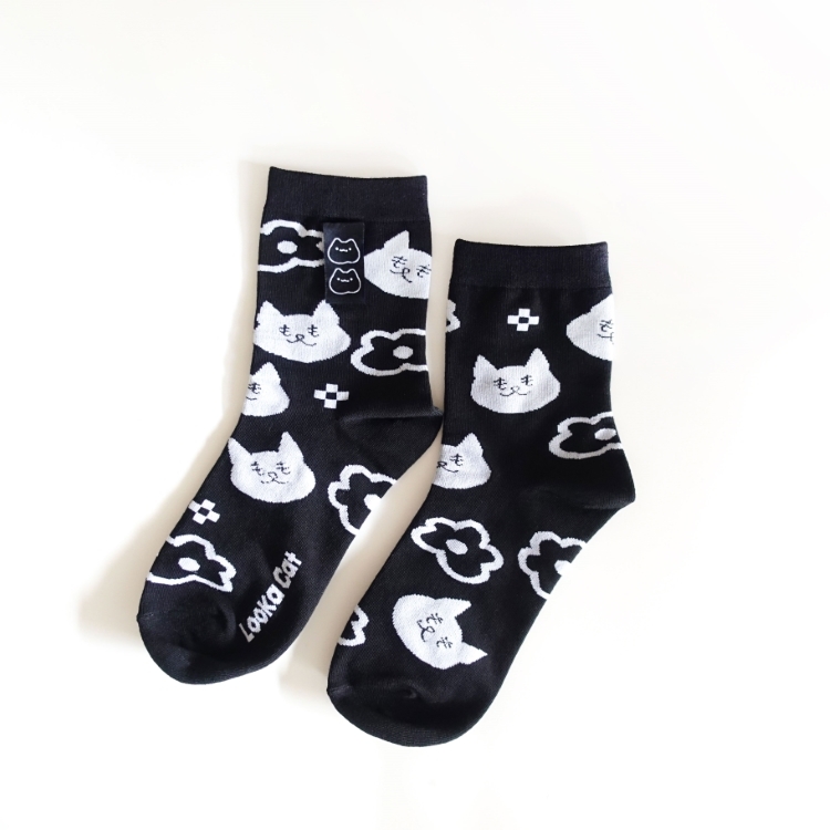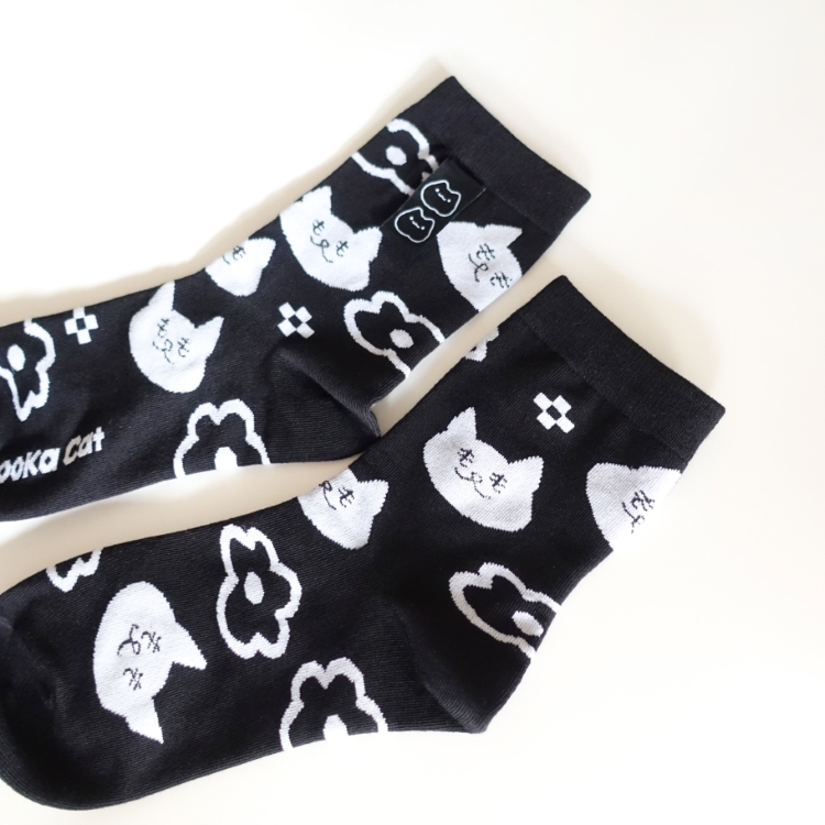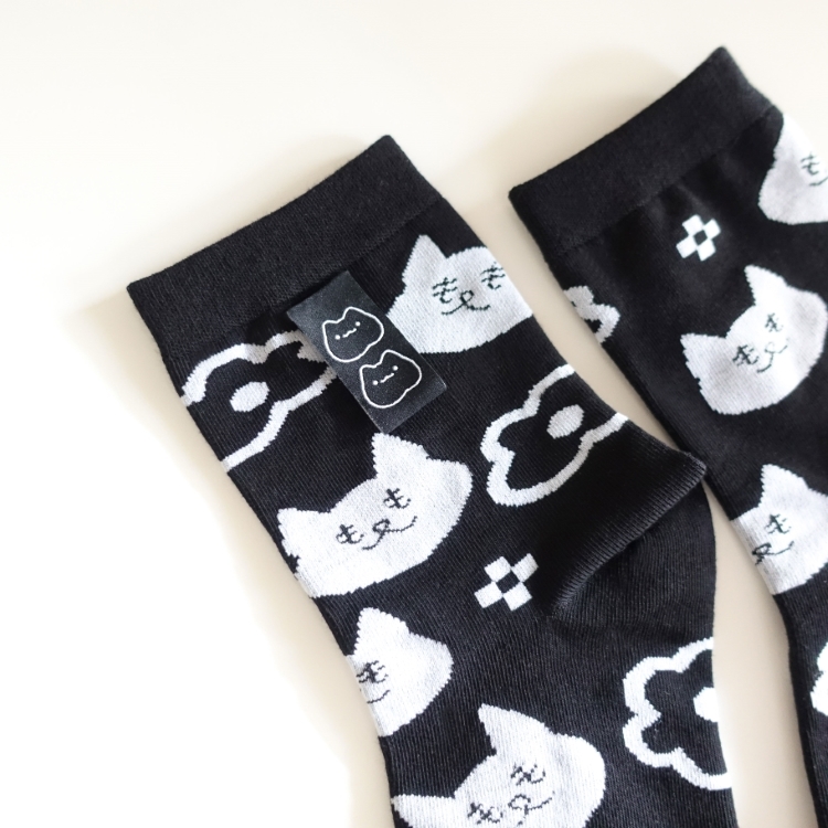 特色:品牌織標、滿版緹花中筒襪、微寬版不綁腳、腳踝也舒適