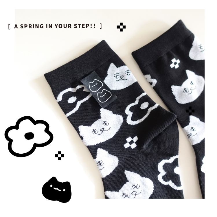穿上貓咪襪子、擁著紛飛的花