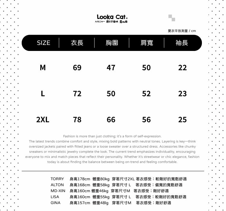 L 衣長72 胸圍 116 肩寬 52 袖長 23